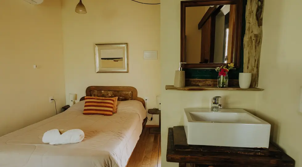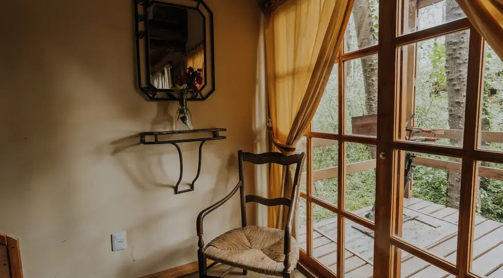 Está compuesta por un cuarto matrimonial con vistas al bosque y otro cuarto con 2 camas de 1 plaza con vistas al bosque y al arroyo. Baño completo con vistas al bosque, ducha y bidet.